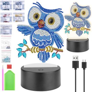 Laat de creativiteit van je kind schitteren met dit vrolijke DIY diamanten nachtlampje. Deze complete knutselset bevat een schattig uilvormig nachtlampje en heldere 5D kristallen diamanten waarmee kinderen hun eigen gepersonaliseerde lampje maken. Dankzij het eenvoudige “plaats en plak” systeem kunnen kinderen snel aan de slag en binnen 1–2 uur een prachtig, glinsterend kunstwerk voltooien.