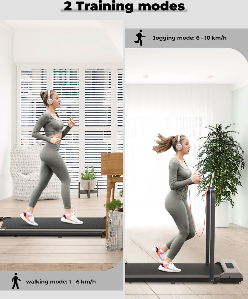 Of je nu af en toe wilt bewegen of op zoek bent naar een gemakkelijke manier om in vorm te blijven, deze 2-in-1 opvouwbare loopband past perfect bij jouw levensstijl. Comfort, veiligheid en gebruiksgemak staan centraal. Wacht niet langer en haal jouw thuisfitness naar een hoger niveau!