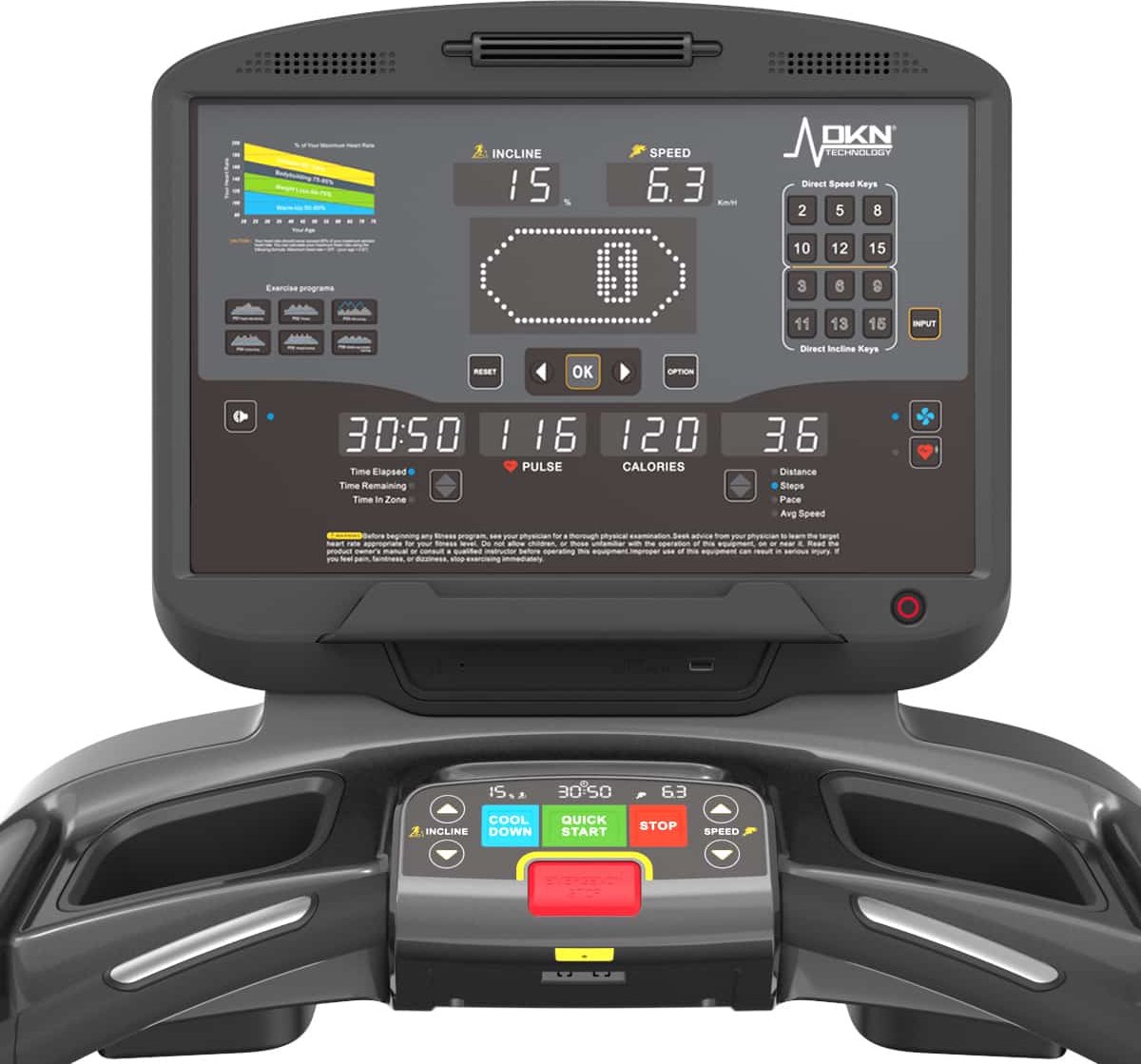- Real-time gegevens en overzicht: Dankzij slimme LED-schermen вижу je met nauwkeurige metingen zoals snelheid, afstand, calorieën, tijd, hellingshoek en hartslag. Dankzij de ergonomische one-touch knoppen regel je snel en gemakkelijk de snelheid en helling.