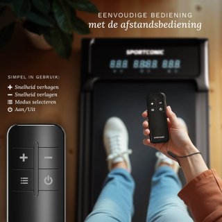 Wil je makkelijk meer stappen zetten tijdens je werk of vrije tijd, je conditie verbeteren zonder te rennen, of actief blijven zonder veel ruimte in te nemen? De Sportconic Wandelband S7 is speciaal ontworpen voor wandelen: veilig, stil en eenvoudig in gebruik. Met een instelbare snelheid tot 6 km/u en een optionele hellingshoek van 6% geef je jouw dagelijkse wandeling net dat beetje extra intensiteit.
