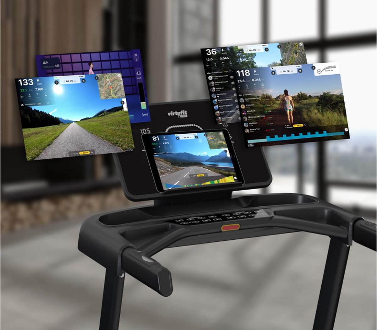 Doe mee aan virtuele runs en competitie met hardlopers over de hele wereld via Zwift. Kies uit diverse routes en intensiteit, doe mee aan wedstrijden of loop gezamenlijk met vrienden. Let op dat Zwift geen automatische weerstandssturing biedt bij hellingen.