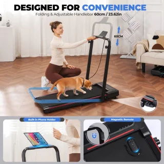 - Compact & makkelijk verplaatsbaar – Dankzij opklapbare handvatten en transportwieltjes schuif je het loopband makkelijk onder een bureau, bank of bed. Ruimtebesparing zonder in te leveren op functionaliteit.