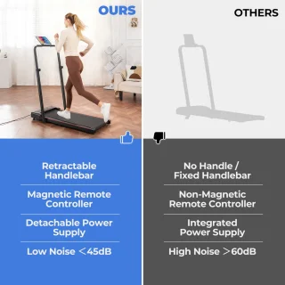 - Ultra stil en comfortabel – De motor werkt fluisterstil (<45 dB) en het dempingssysteem beschermt je gewrichten voor soepelere, aangenamere wandel- of loopsessies.