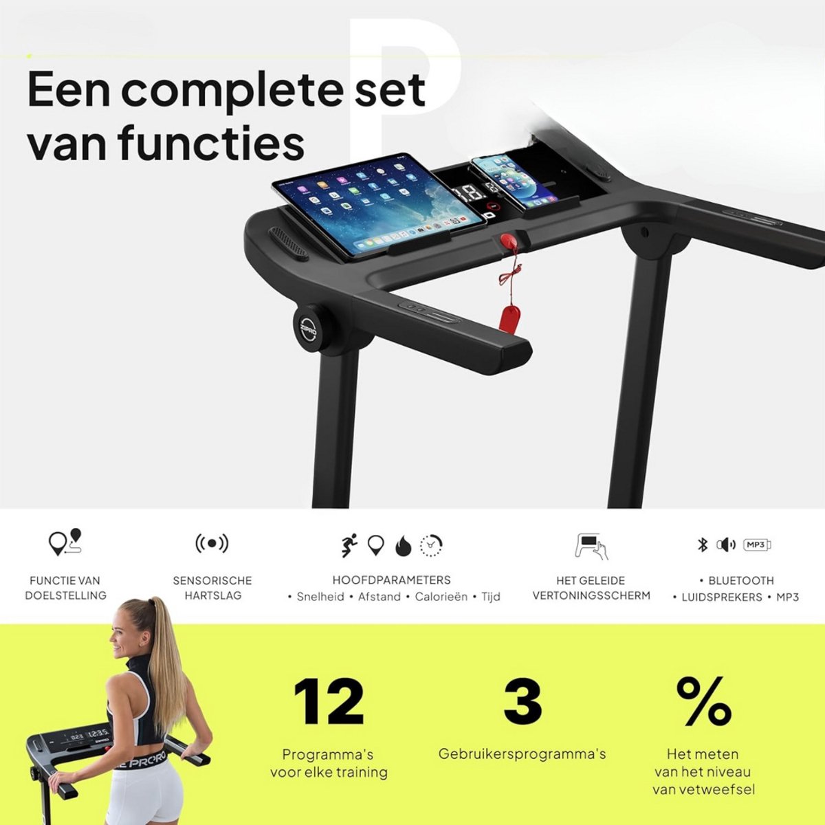 - Veelzijdige trainingsmogelijkheden: Met een maximale snelheid tot 16 km/u is deze loopband geschikt voor zowel rustige wandelingen als intensieve hardloopsessies.