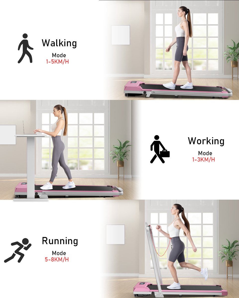 Met twee instelbare standen – wandel- en loopmodus – en een snelheid tot 8 km/u biedt deze loopband precies de juiste ondersteuning voor jouw fitnessniveau. Wil je onder je bureau wandelen tijdens het werk of je uithoudingsvermogen vergroten? Kies voor de wandelmodus of versnel voor een stevige loop. De instelbare snelheid, variërend van 1 tot 8 km/u, maakt het eenvoudig om in je eigen tempo te trainen.