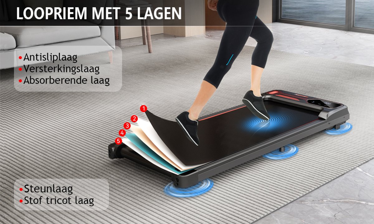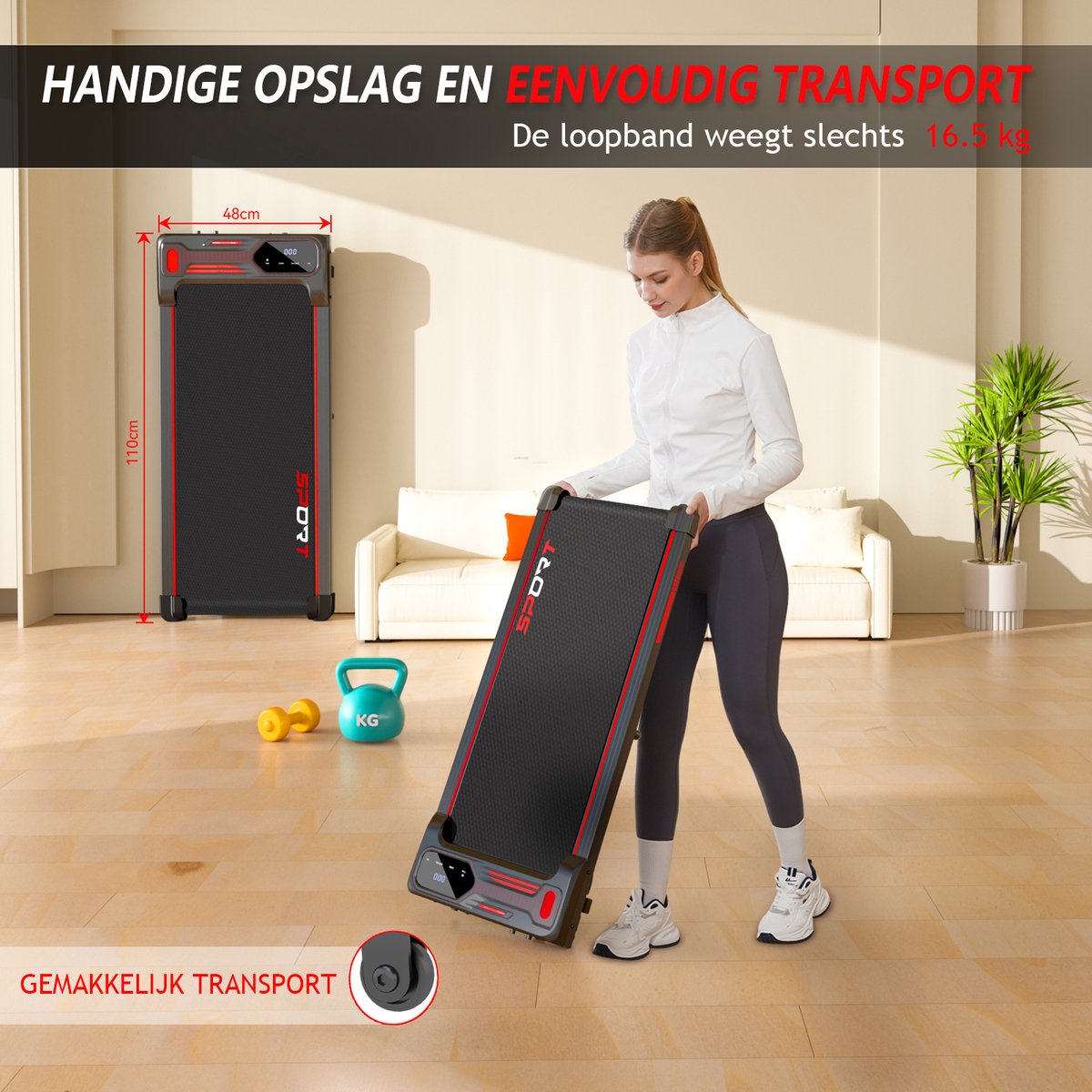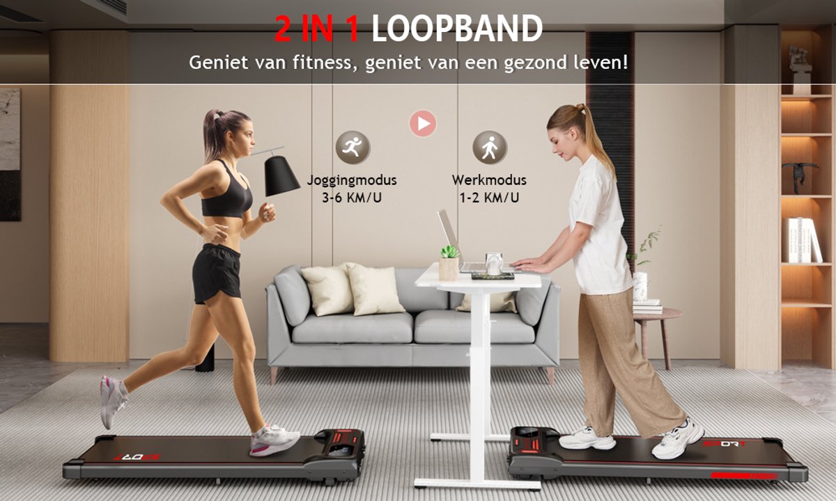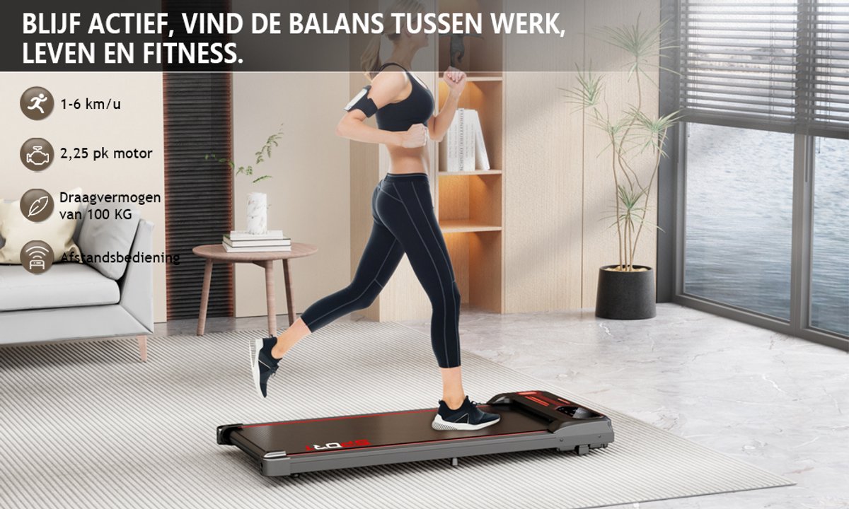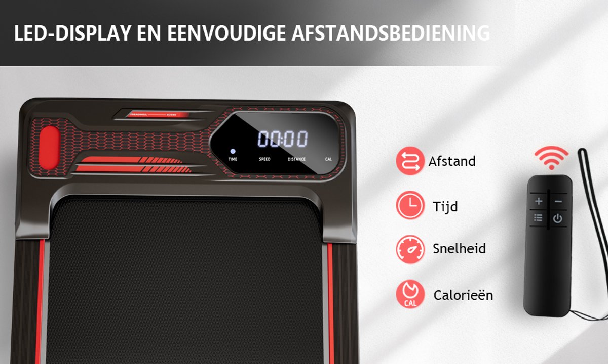 - Snelheidsbereik van 1,0 tot 6,0 km/u: Of je nu rustiger wilt wandelen of je conditie wilt verbeteren met joggen, deze loopband past zich aan jouw tempo aan.