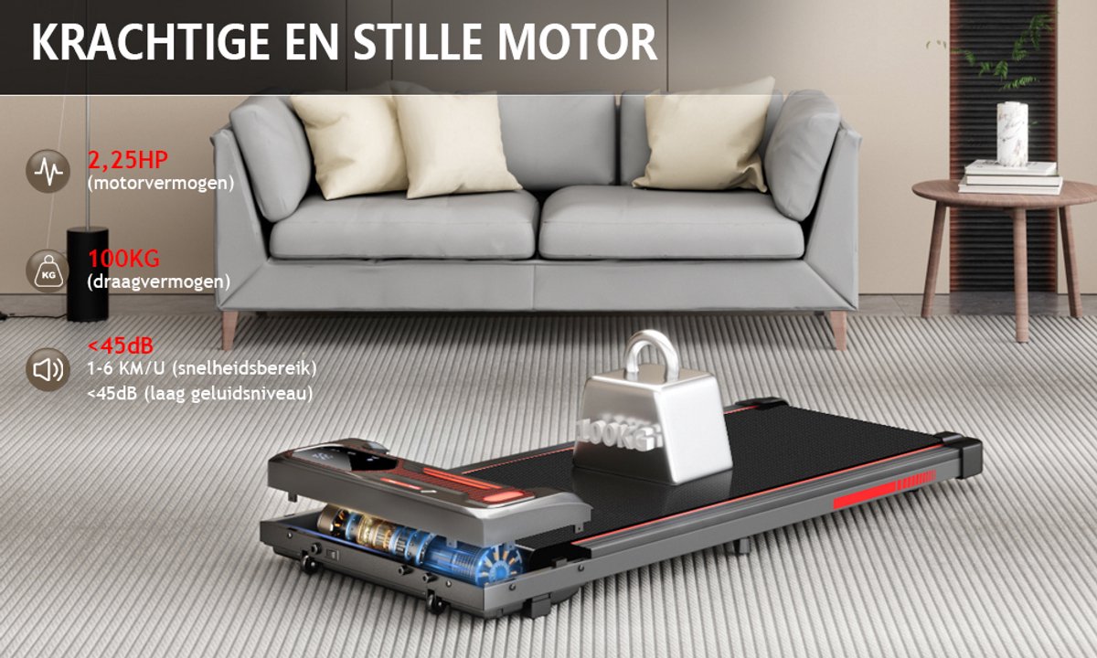 - Motorvermogen van 2,25 PK: Zorgt voor een soepele en stille loopervaring, zelfs bij intensieve trainingen.